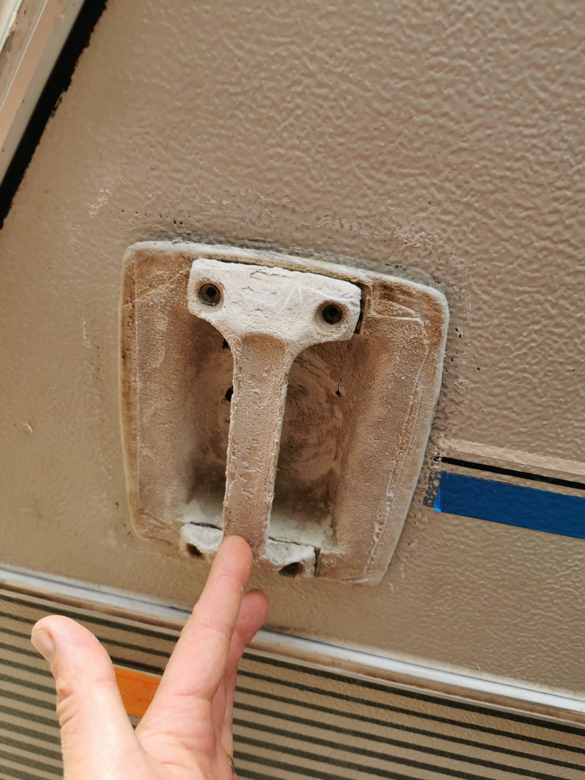 Manerul este ușor de instalat, având toate componentele necesare incluse. Acesta are o formă ergonomică, fiind confortabil la atingere și ușor de utilizat. Culoarea sa neutra se potrivește cu orice stil de rulotă, adăugând un aspect estetic plăcut.